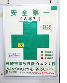 当社においての基本的な考え方としまして、安全な職場からしか安全な商品は制作出来ないという基本思想から当社の安全に対する取り組みとして経営計画書に次のような文言が明記されています。